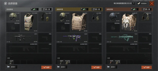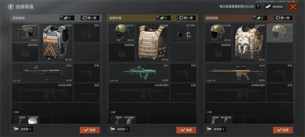 首先初赛阶段的装备以封锁区强度的为主,可以看到主要分为了三大类别,分别是近战突击,全能中坚,远程压制三类。
