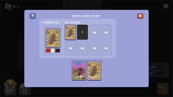 2、在蚂后商店这里点击即可生产,后续还会解锁更多的蚂蚁兵种。