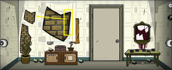 2、抬头查看左上方墙壁破损处,从中取出隐藏道具棍】。