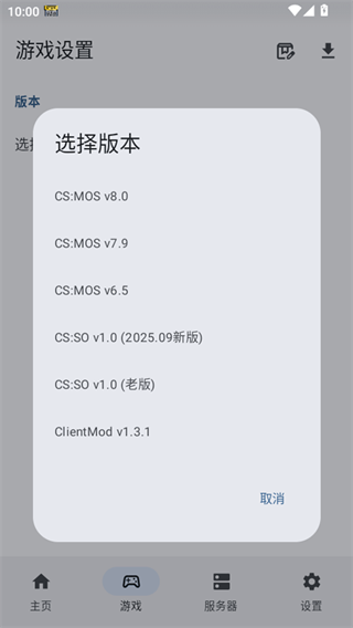 2、下载完成后,进入【服务器】板块,在列表中选择刚刚安装的游戏,并确认要使用的游戏版本。