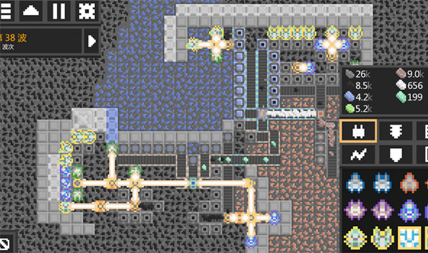 1、传送带一定要从钻头拉到基地和其他二级产物生产机,也要拉到炮台,这样炮台才能攻击。