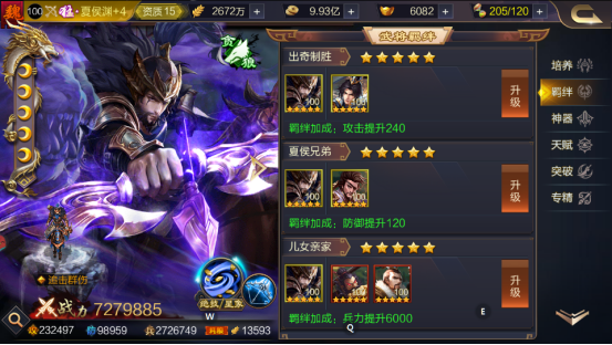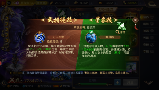 武将无疑是最主要的系统之一,游戏中有许多武将培养的系统,包含如下:武将基础属性,武将技能,兵种,星象,等级,进阶,突破,羁绊,神器,天赋,突破,专精,名将录等。