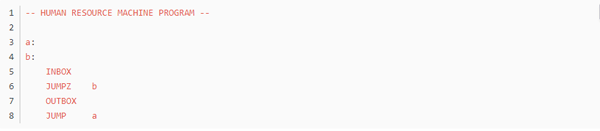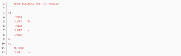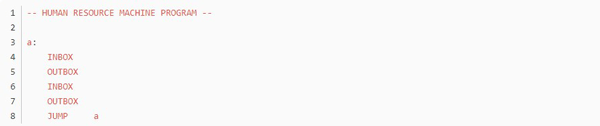 你的程序要告诉你的工人取出INBOX中的每件东西,然后放到OUTBOX中。