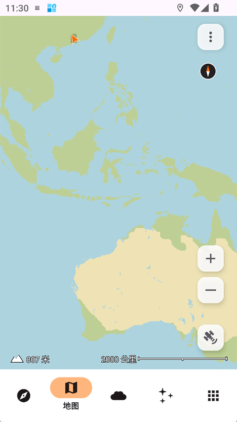 1、打开app后可以在不需要网络情况下进行户外工具的使用,例如查看海拔、经纬度等信息