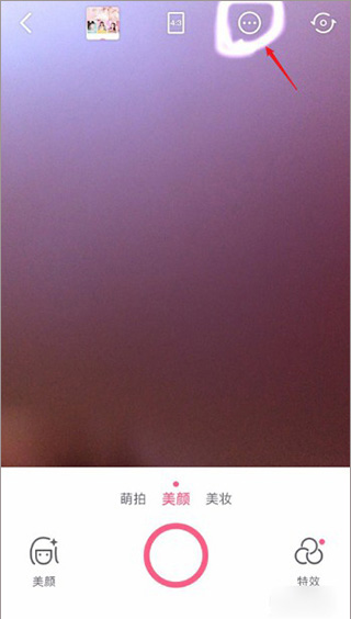 2、在拍照的模式的右上角有个省略号圆圈的图标,点击进去;