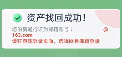 - 如果您的角色资产已成功找回,请在登录时确认登录的是否为已找回成功的网易账号。如遇到问题,请联系游戏官方客服协助您处理。