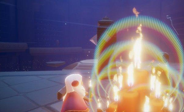 4、【拯救先祖,回溯历史】在探索王国的时候,旅人会在各个地点找到泛着蓝光的先祖灵魂。跟随灵魂的记忆碎片,旅人将了解更多关于先祖时代的历史和故事。用蜡烛点亮石像后,旅人会将先祖灵魂返送回天际。
