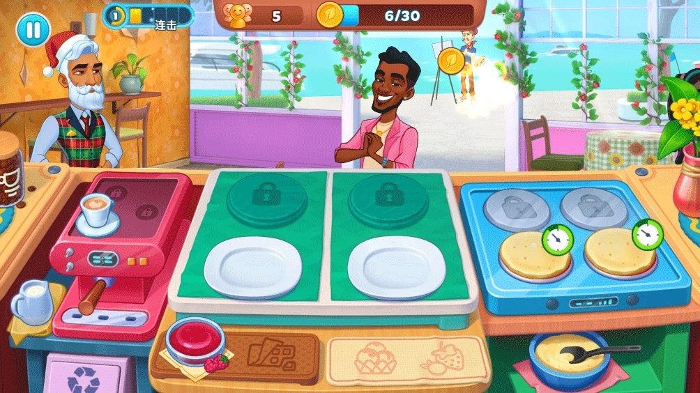 3、顾客来店后,玩家需要根据顾客的订单制作美食,并需要在顾客的耐心值消耗完之前将正确餐点交给他;