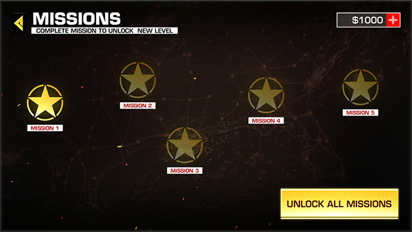 1、下载安装好汽车战场模拟器,进入游戏选择关卡进行游戏,你需要完成前面的关卡才能解锁下一关。