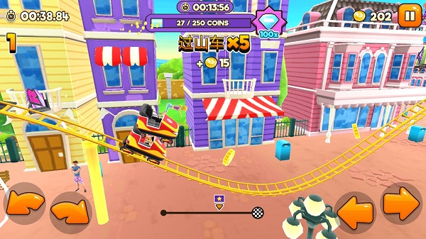 Thrill Rush 是 Uphill Rush 的最新续作,中文名叫做主题公园过山车游戏。这款游戏主打惊险刺激的过山车玩法,玩家可以在两个超棒的主题公园里体验海量关卡和40多种有趣的过山车模型,比如独角兽、坦克甚至狗狗!还有25套各种风格的服装可以选择,让你的角色看起来更炫酷。最棒的是,你可以手动控制加速和减速,完成高难度动作,比如在斜坡上飞驰或者用平衡技巧让过山车冲出轨道,体验前所未有的刺激感。