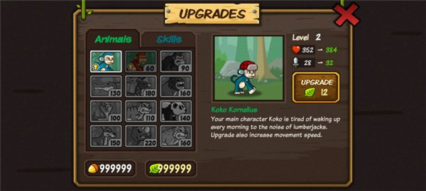 《森林防御战猴子传奇》是一款特别好玩的塔防游戏,英文名叫Lumberwhack。游戏里的主角是一只勇敢的猴子,你需要阻止砍树人破坏环境,保卫自己的家园。刚玩的时候会有新手教程,帮助你快速上手了解玩法机制。
