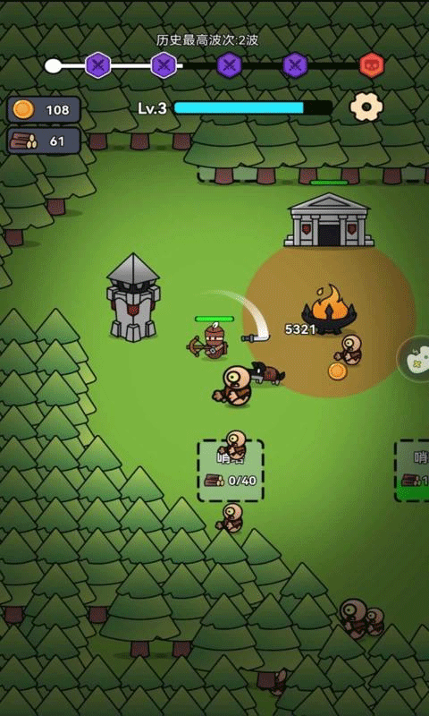 1、下载安装好猎梦保卫战最新版,运行软件并点击获得木材;