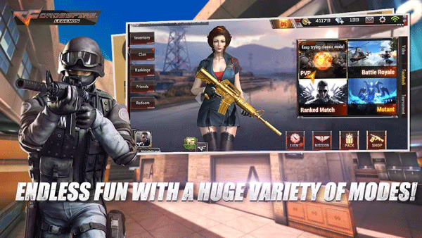 心爱的经典Team DeathMatch和搜索与销毁模式仍然是CrossFire:Legends全球版的核心内容。世界各地的玩家可以享受他们在移动版PC上的乐趣。最重要的是,趋势大战模式也被添加到手机版本中。多达120名玩家将通过空中跳跃登陆地图,并争取成为最后一名站立的人。无所不包的游戏模式将确保我们的玩家享受上瘾,有趣的游戏体验。