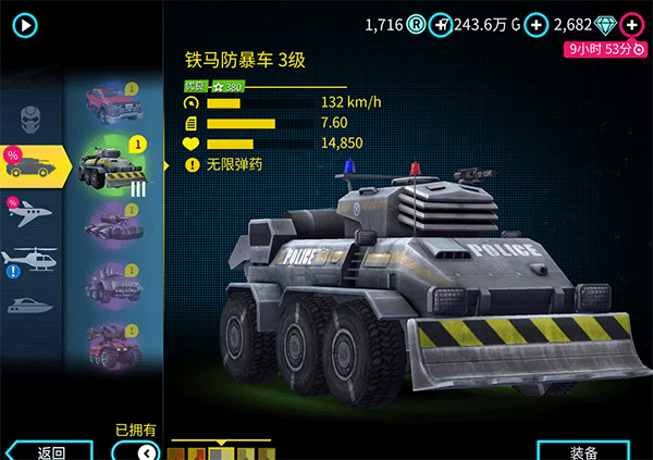 Top5铁马防爆车:最华而不实的载具。五星通缉的时候会和甲龙一起出现。持有一门射速极快的加特林。加特林的威力一般。武器只能对地不能对空(遇到飞机就惨了)。