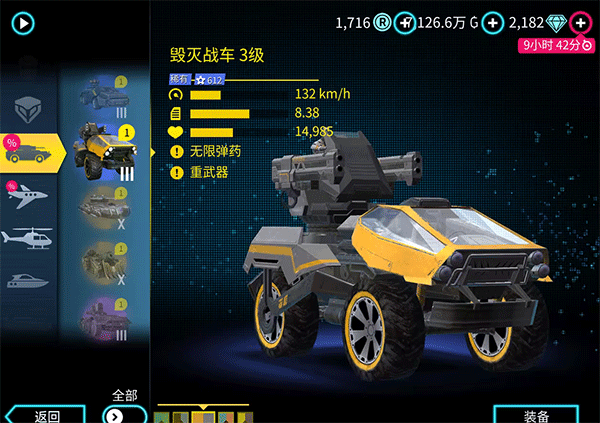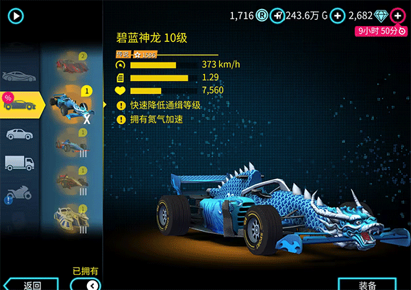 游戏中还有多种载具可供选择,如骷髅战车、毁灭战车等,每辆载具都有独特的玩法和战斗风格。如果你喜欢速度与激情,急速狂魔和碧蓝神龙则是最佳选择。