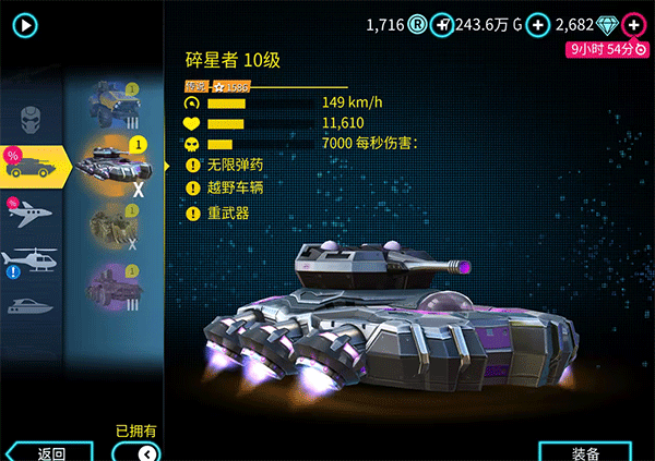 Top3碎星者:之前赛事的奖品。操控奇烂无比。搭载有一门威力极大、射速极快的激光炮。并且还可以在水上开。拥有碾压技能。