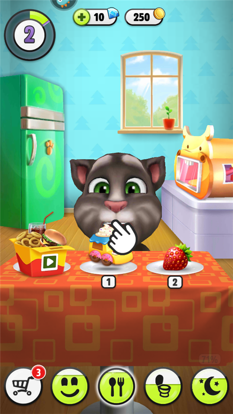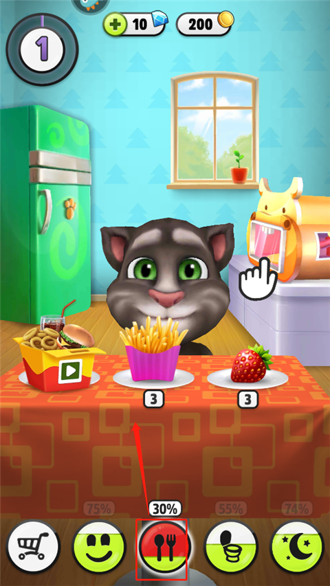 2、养育你专属的汤姆:和他玩游戏,喂他最喜欢的食物,带他上床睡觉。