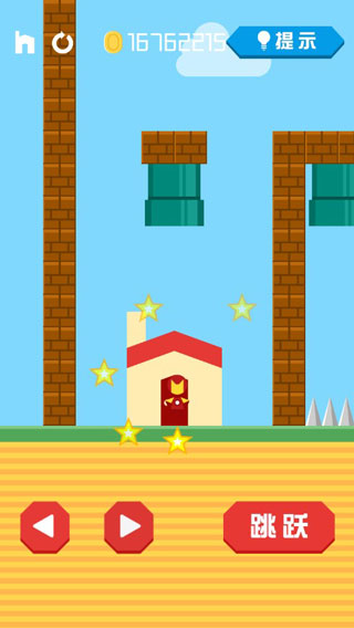 游戏包含简单、普通、困难、噩梦共计100多个关卡,左侧控制角色移动,右侧控制角色跳跃,期间界面中有时还会给予一定的提示,还有许多障碍、陷阱的设计,请不要盲目的进行闯关哦。