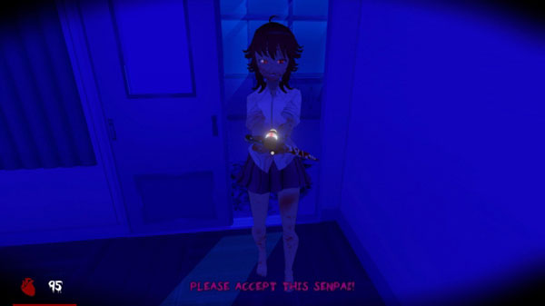 病娇会换上兔女郎服装!啊!快刀我!刀我!咳..回归正题。这个模式场景会变得很黑,全是番茄酱,并且会更换bgm,很有压迫感的bgm(恐怖指数兔女郎占一半,bgm占一半)。她会丢飞刀,之后你12秒内不能奔跑,她可能会飞扑过来给你按地下拿刀捅(对,没错,她还有刀)。之后正常流程找密码,她有时会去拉电闸,她拉完电闸后会在电闸室待几十秒,只要你不是太靠近电闸室,她是不会出来的,在这期间你可以大胆探索。你可以只找三位密码,然后去蒙,她会让你去蒙,但现在只能蒙三次,输完密码后拿到钥匙,但是是假钥匙,真钥匙在她屁股后面,但是摸她屁股她也会说[你在耍我吗]然后扭你脖子(之前的三个难度则不会)有很小概率不会被扭(看脸)。她会跳窗户到大门外,大约20秒后她会开门,如果被刀是一刀斩。