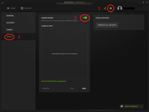 1、首先确保Nvidia Experience里sheld的gamestream开启