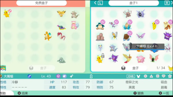5、可以查看寄放的宝可梦中每只宝可梦的特性、性格、学会的招式、能力的信息。此外,加入进阶方案之后,可使用确认宝可梦能力高低的评定功能。