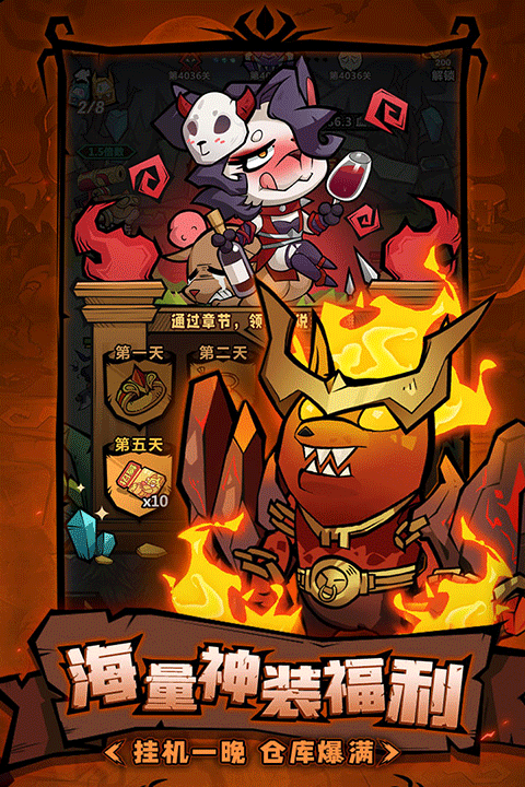 即使离线了,各位狗狗也会为你一直作战,自动闯关,推塔关数睡觉也能涨,坐等收取奖励即可了