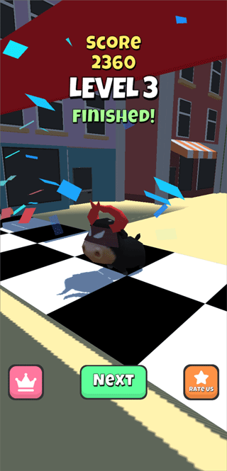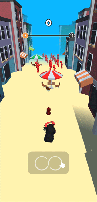 2、玩家需要控制牛将红色的人撞到并冲刺到终点