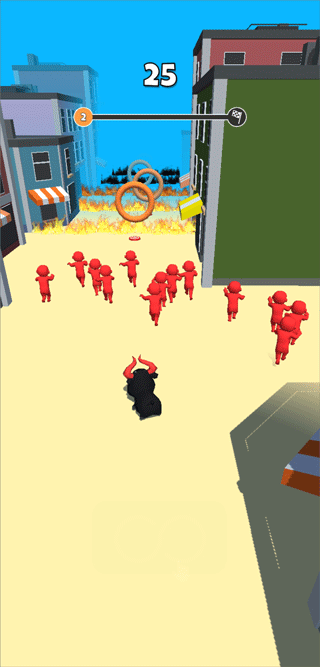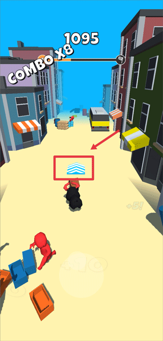 5、红色人是会向公牛发出武器进攻的,玩家需要及时躲避攻击冲击到终点即可过关