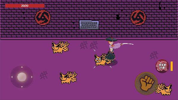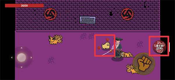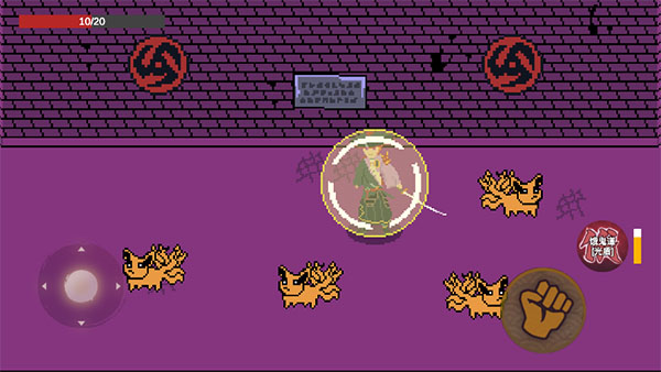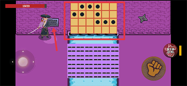 1、在漂泊佩恩游戏中玩家通过左下角轮盘操控角色的移动,右边拳头按钮为攻击
