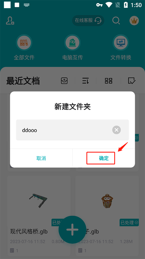 2、然后就会弹出来一个新建文件夹,输入文件夹名称点击“确定”即可。