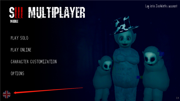1、进入游戏首页,我们可以看到是英文的,点击左下角的国旗;