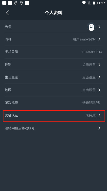 1) 登录网易云游戏平台,点击出现的“实名认证”。