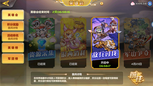 1、敌军讨伐:活动期间,在世界地图中讨伐敌人可以获得积分,敌人等级越高积分越高,积分达到一定程度可获得积分奖励,最终排行根据积分排名。