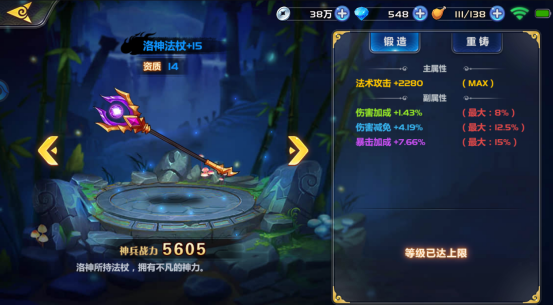 ④神兵强化有等级上限。如普通神兵最高可强化至15,则通过重铸可获得的额外属性上限为三条;稀有神兵强化上限为20则重铸可获得的属性为4条;史诗和传说神兵强化上限为30则重铸可获得的属性为5条;