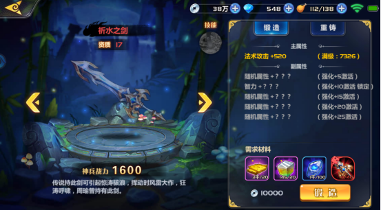 在此功能中,玩家可消耗相应的材料来打造与强化各种强力的神兵,主公等级到达28级时开启。