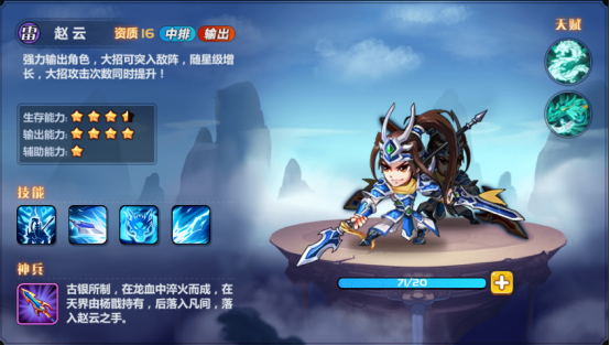 ①神兵共分4个等阶分别为14资质,15资质,16资质,17资质。同时部分神兵有对应的专属佩戴武将,可激活羁绊,提升武将属性。(如龙胆亮银枪对应赵云)。