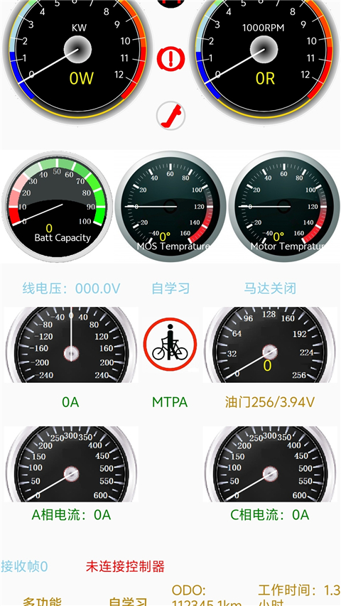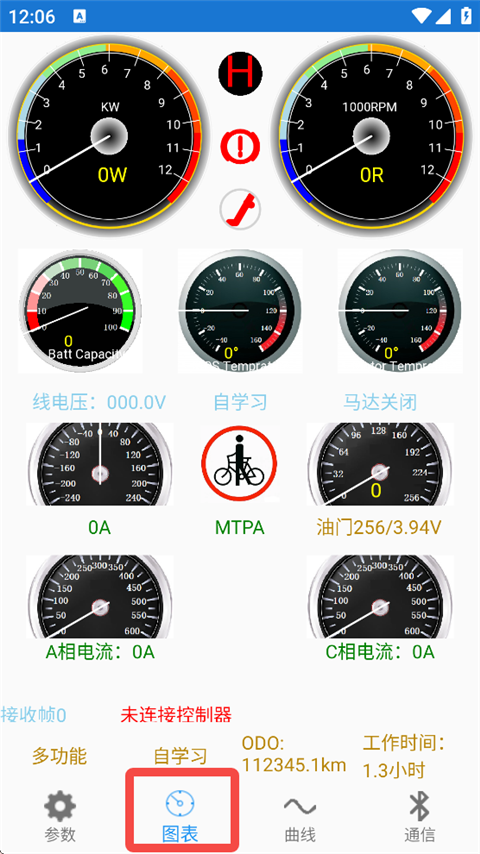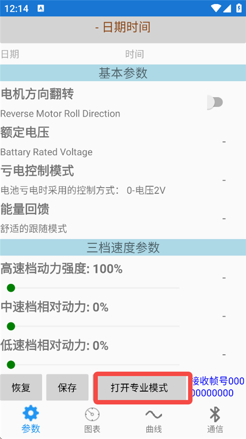 1、通过蓝牙连接远驱控制器,实时显示转速、电流、功率等参数。