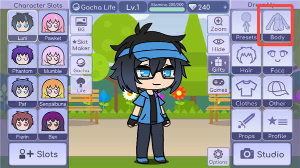 1、进入加查人生1游戏中,可以先随便选一个角色形象,然后点击【Body】。