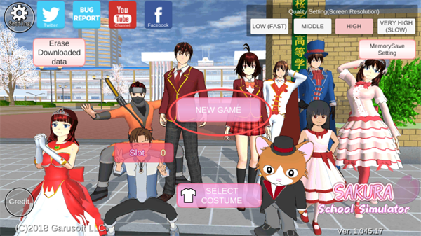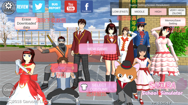 注意事项:此版本仅支持英文和日文两种语言,在游戏左上角选择【Setting】即可设置。若需要中文语言,请下载樱花校园模拟器中文版本畅玩!