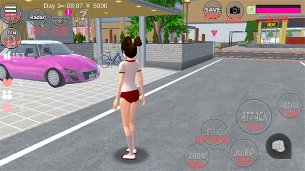 1、开放沙盒式世界:你可以自由在城镇中行走、进学校、逛街、进入建筑、开车、搭飞行装置等。不是必须一直上课或按固定流程走