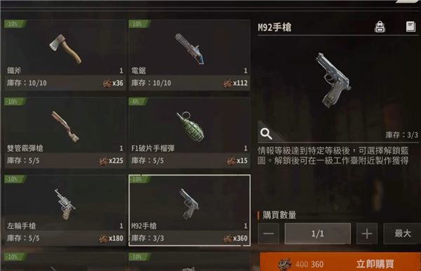游戏中有各种武器供玩家建造使用,包括枪械、近战武器等,玩家可以升级武器,提高战斗力。