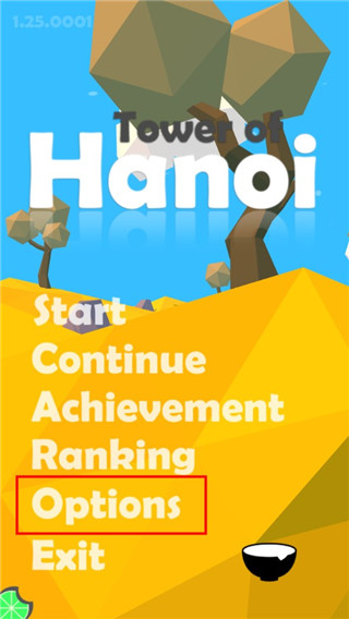 1、在本站下载汉诺塔手机游戏,点击options;