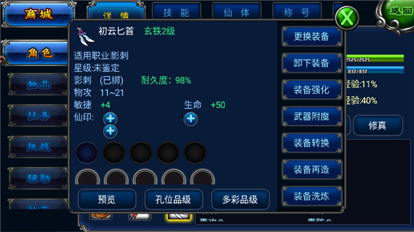 7、点击相应武器还可以强化武器、换武器等操作。