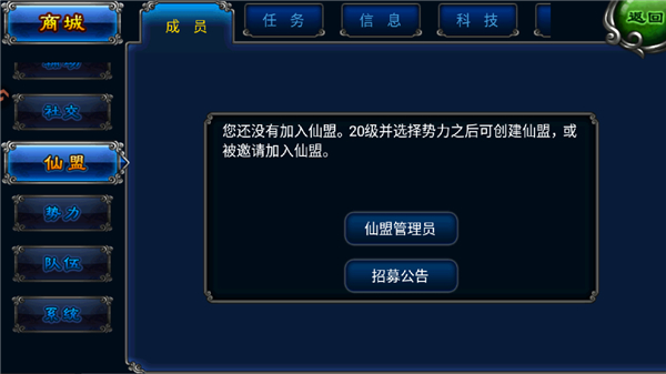 6、达到相应等级尽可能的进入仙盟,完成任务可以获取丰富的资源;