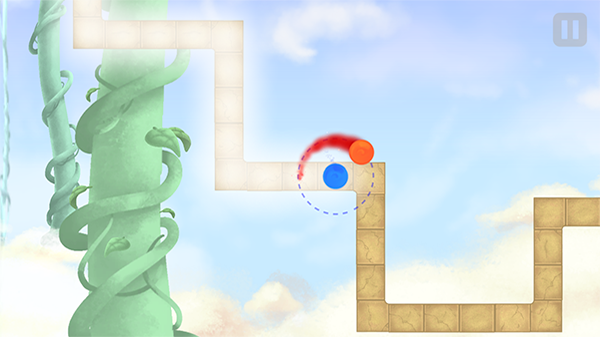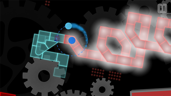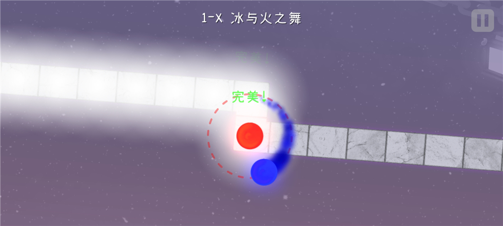 2、进入教程关卡,当转的球在路线的方块上就点击,一直这样操作,两个小球就能不断前进。