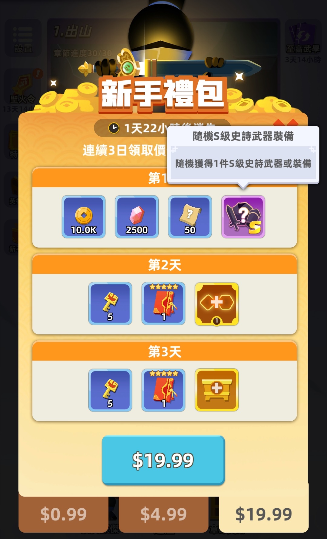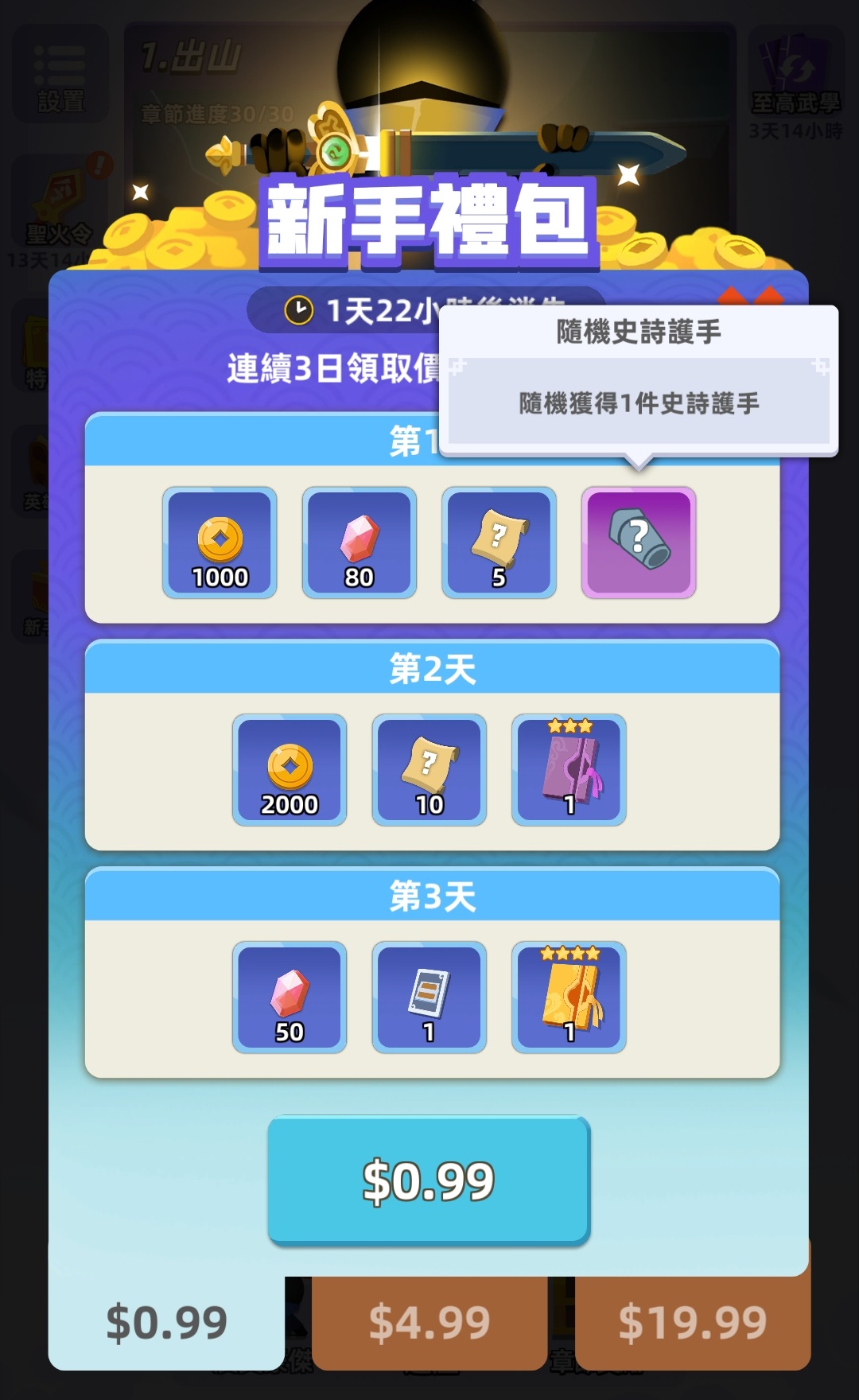 8、不同价格的新手礼包获得的装备都不一样,越贵的礼包得到的装备越好。