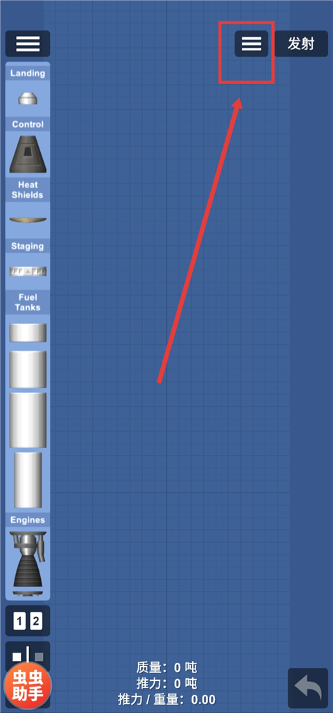 7、加载成功后,点击右上角【发射】即可发射火箭。