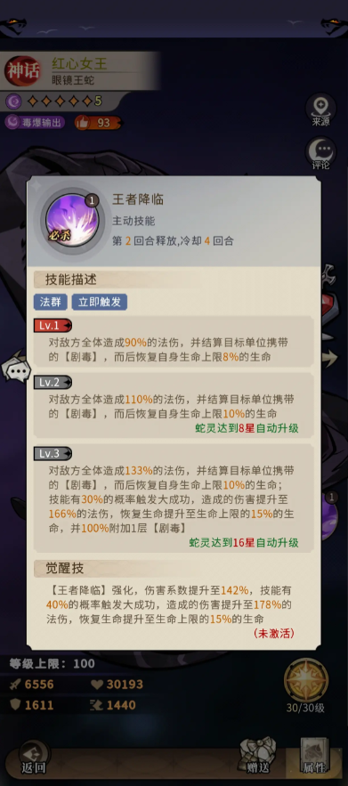 选择思路:在常规的游戏里面火系和毒系都是持续伤害,但是这个阵容里面的火和毒因为有了红心王后和法海,都可以直接引爆,并且因为毒和火都是上限五层,所以没必要一直叠加,直接引爆最好,这样子也不缺了爆发伤害,并且法海有了专武之后,后期两个技能都可以引爆火伤,也是非常实用的选择。