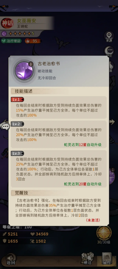女巫微安和玫瑰公主,暗系和火系的辅助,不必多提都知道辅助的重要性,虽然微安的复活技能要等到16星才能生效,但是前期玫瑰公主一个复活也是够用的,再加上微安可以根据对面的持续负面效果受到的伤害来治疗队友,咱们又是可以一直叠毒和火的阵容,玫瑰公主还可以根据对面的行动来给对面套灼烧,加上奇珍的搭配给对面来上火毒(,所以治疗量是完全没有问题的。