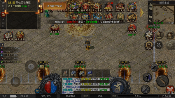 1、进入雷霆炸翻天游戏内为单职业传奇版本,我们可以之间开始游玩。